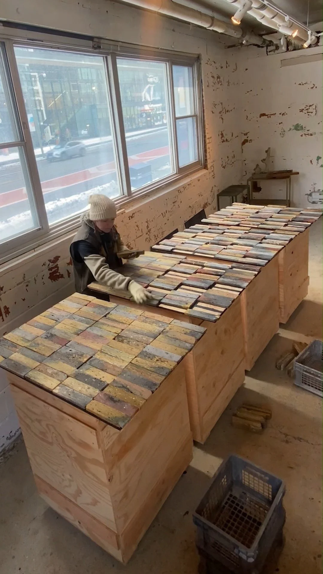 Sourced from the former Danforth Baptist Church and Sunday School (originally Chester Baptist Church) in Toronto’s North Riverdale neighbourhood: a 1911 Gothic Revival building that was expanded in 1931 and partially deconstructed in 2025 after over 100 years of serving the Danforth community. We were able to save 25 tons of this special material from ending up in a landfill.