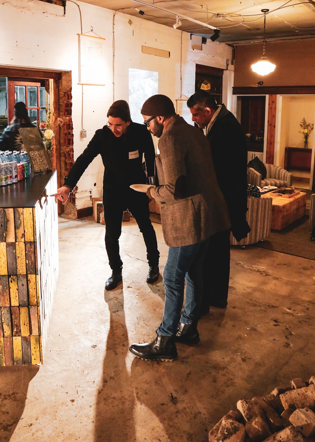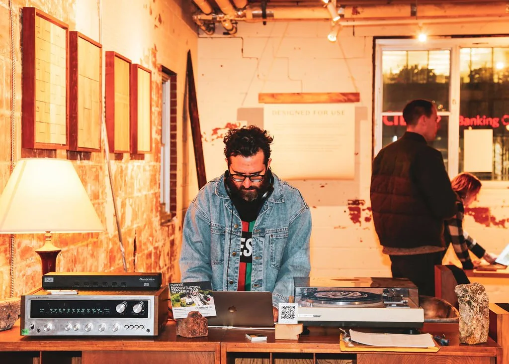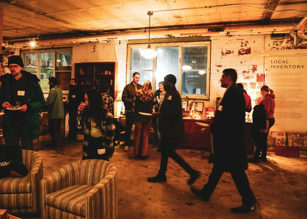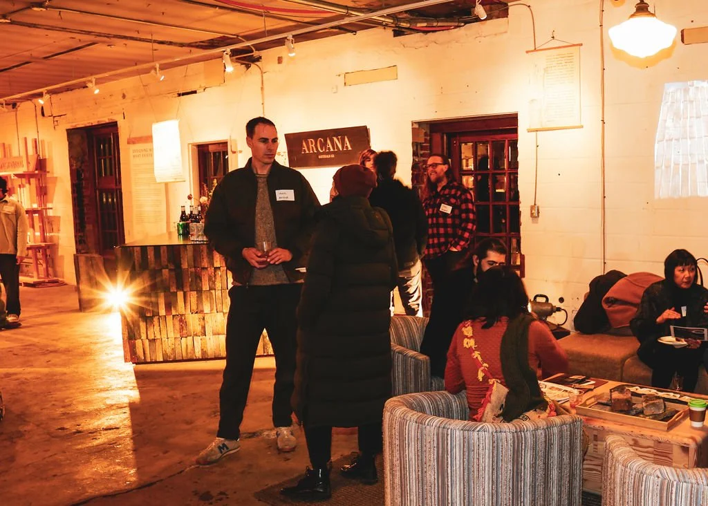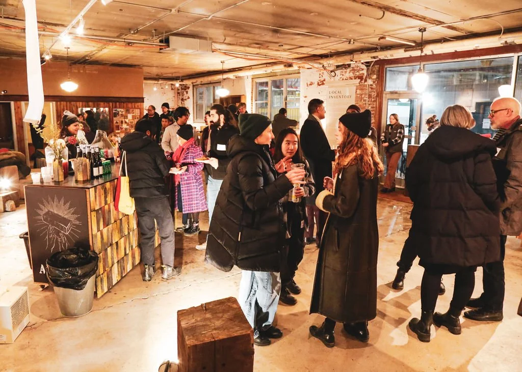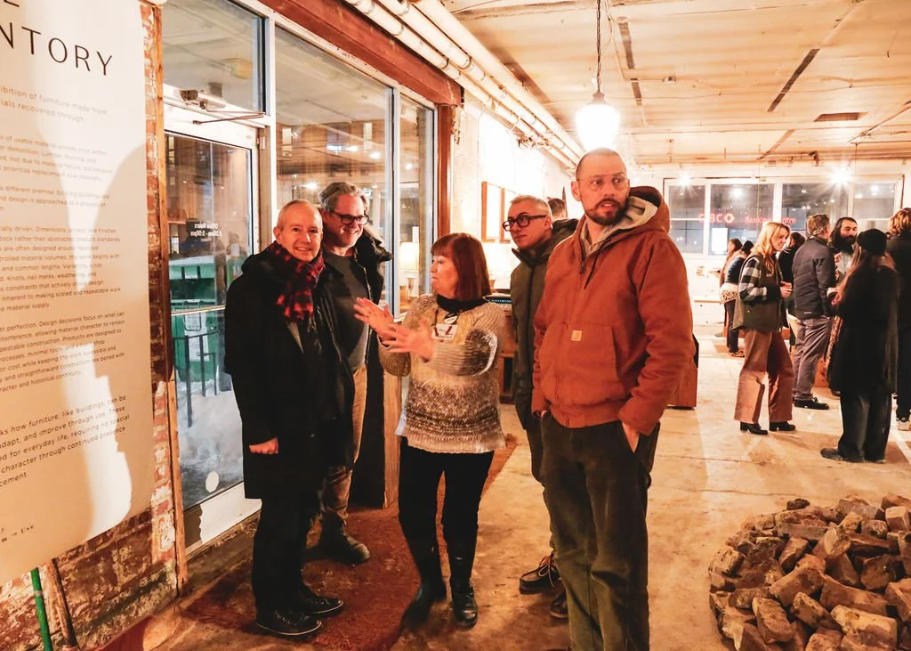 As a part of the 2026 DesignTO Festival, we welcomed nearly 200 guests — a wide range of reclaimed material enthusiasts including architects, heritage professionals, designers, students, and artists — to two receptions that celebrated not only this new bar, but also the grand opening of Ouroboros’ new headquarters and their showroom featuring the “Local Inventory” collection of Gruetter’s reclaimed wood concept furniture.